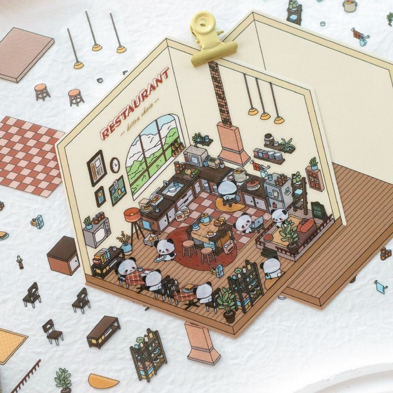 Panda Home Collection DIY 3D Scene Stickers 4 Cute Miniature Scenes